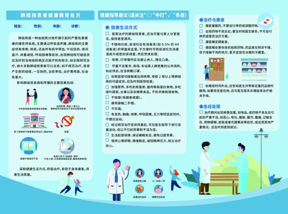 《健康教育处方》覆盖《健康中国行动(2019-2030年)》《国家基本公共卫生服务项目》《贫困地区健康促进三年攻坚行动方案》涉及的疾病,共45种,包括13种慢性病、10种传染病和地方病、10种妇女疾病和12种儿童青少年疾病,肺结核位列其中。