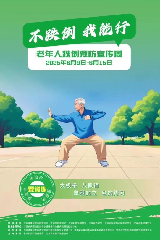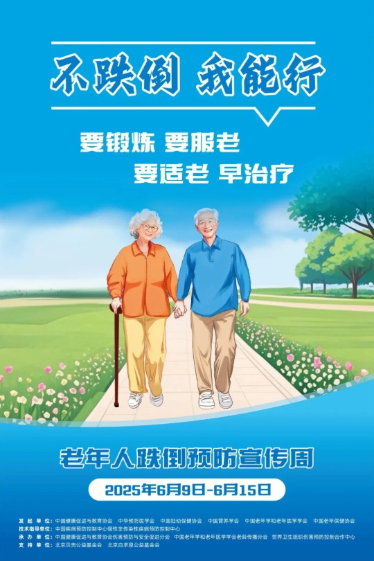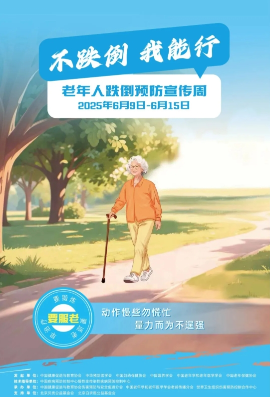 2025年6月9日至15日是我国首个“老年人跌倒预防宣传周”,本届宣传周的主题是“主动防跌倒,积极老龄化”,宣传口号为“不跌倒,我能行”,并提出“要锻炼、要服老、要适老、早治疗”的十二字防跌倒口诀。