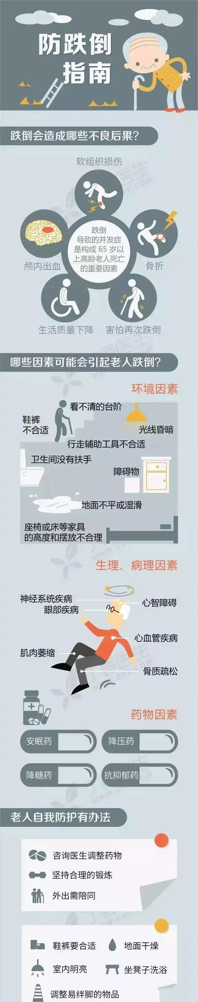 最后需要提醒子女及照护者,每年应定期带老人做视力和全身检查,如果血压太低或心律不齐,都可能诱发摔倒。