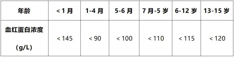 根据外周血血红蛋白含量,贫血可分为4度:轻度(90~正常下限);中度(60~90g/L);重度(30~60g/L);极重度(<30g/L)。新生儿Hb为120~144g/L者为轻度,90~120g/L为中度,60~90g/L为重度,<60g/L为极重度。