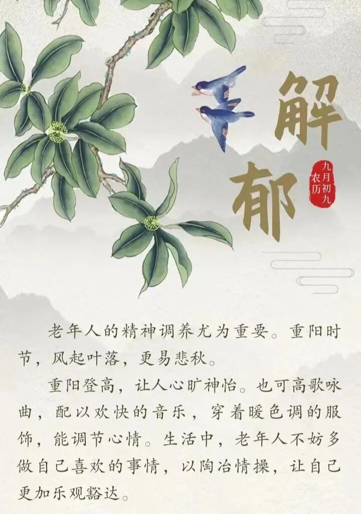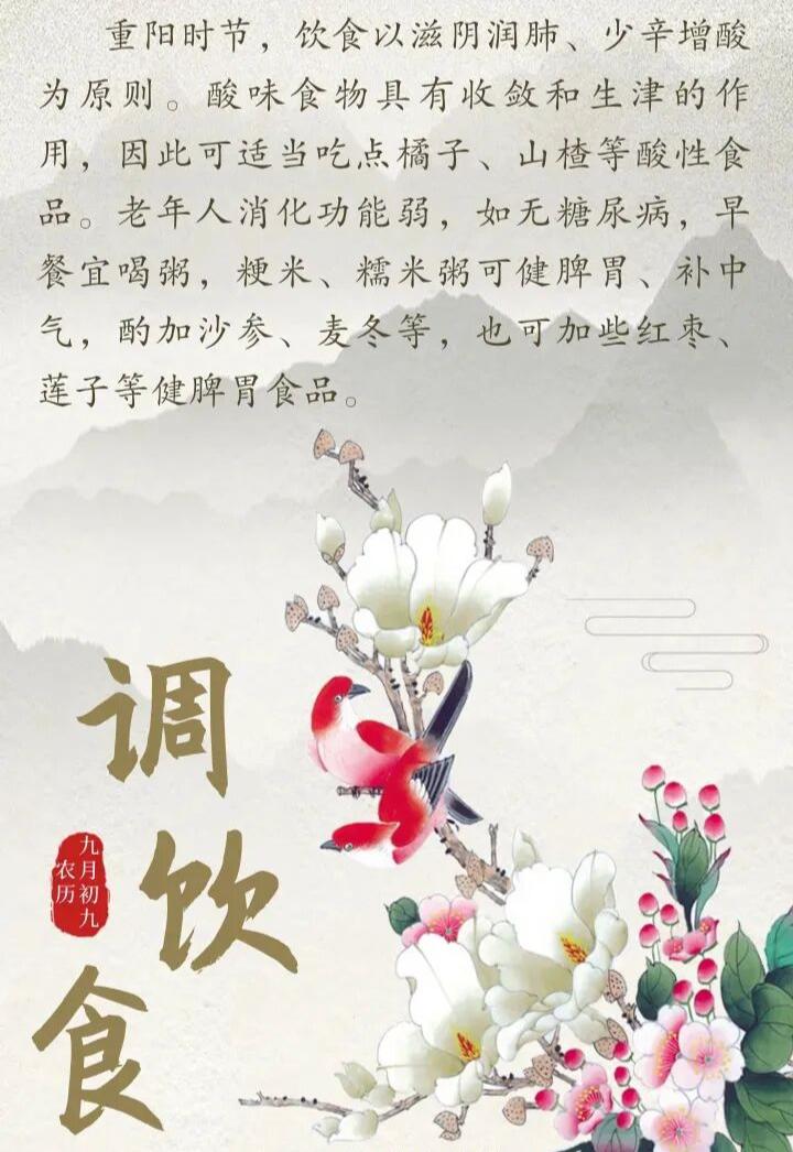 【重阳节】给老年人送一份养生知识“锦囊” 金秋十月,秋风送爽。我们迎来传统节日——重阳节。自古以来,九九重阳就被赋予了“长寿”的含义,传承至今,重阳节又增添了敬老的内涵。进入秋冬季,气温逐渐下降,恰逢重阳佳节,小编特意送上一份养生小知识,祝愿老年朋友,平安多喜乐,岁岁长安康。 家有一老,如有一宝。老年人的健康关乎整个家庭的幸福,要想家庭好,健康最重要。祝愿所有的老年朋友“重阳享安康,幸福伴身旁”。 /健康科普 来源:健康中国、河北卫生健康 说明:文中部分图片来源于网络,非商业用途,仅用作公益科普,如有侵权,请联系删除
