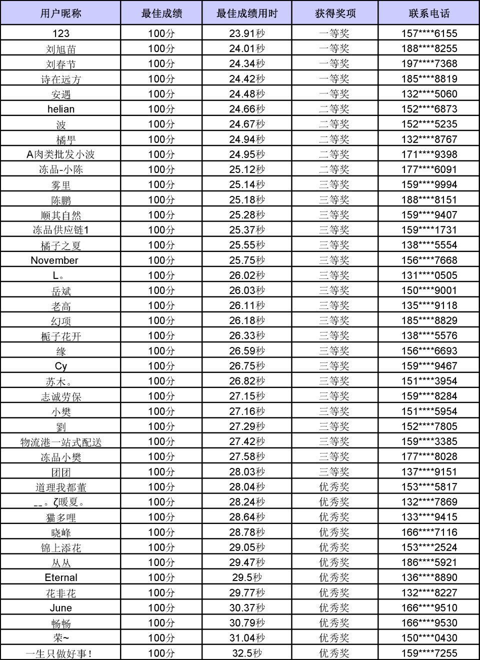 一等奖(排行榜1-5名)